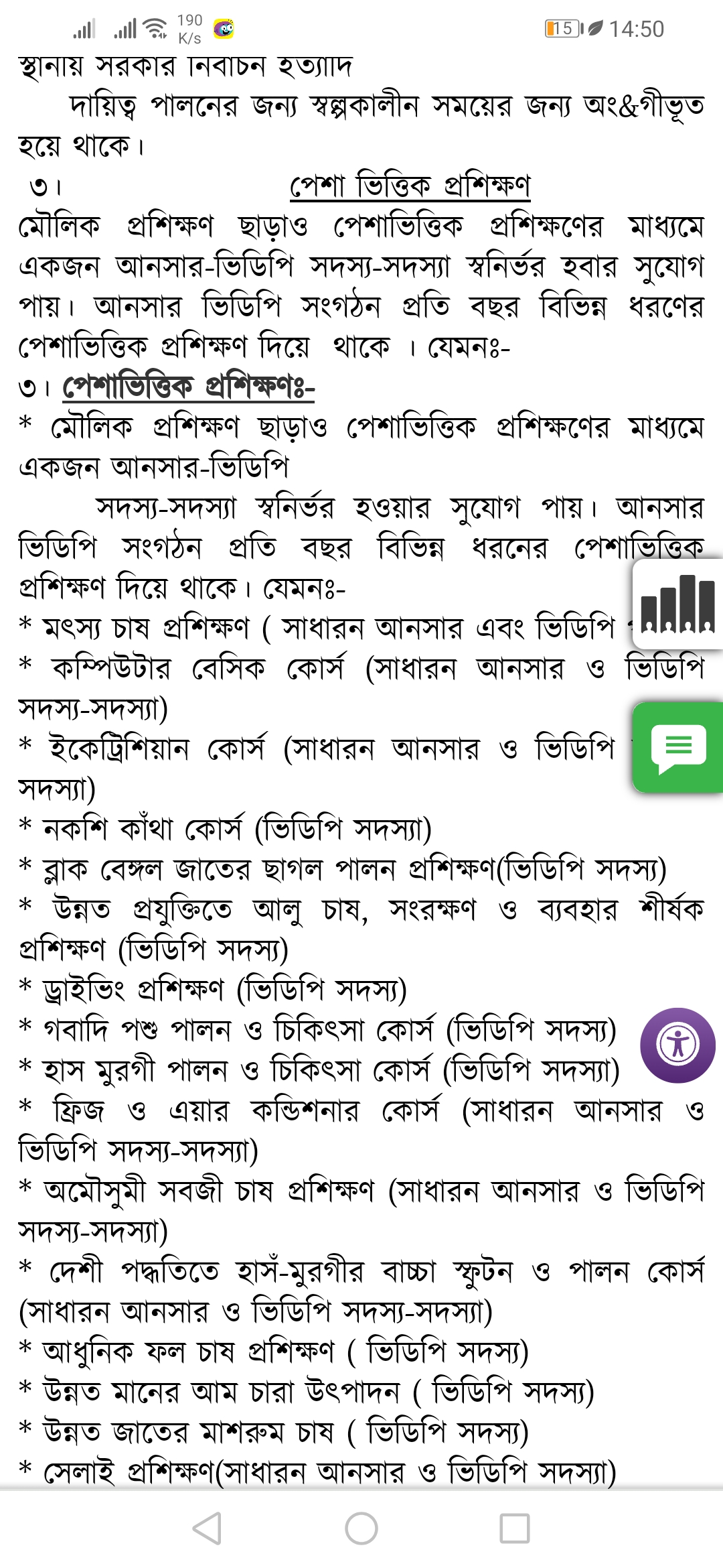 আত্বসামাজিক উন্নয়নে প্লাটুনভূক্ত সদস্য/সদস্যাদের যোগ্যতা অনুসারে বিভিন্ন পেশা ভিত্তিক প্রশিক্ষণ প্রদানের জন্য বিভাগীয় প্রশিক্ষণ কোর্সে প্রশিক্ষণার্থী প্রেরণ করা।